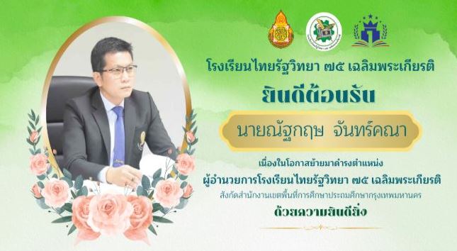 แสดงความยินดี และยินดีต้อนรับ นางสาวพิมพ์พร วงศ์อนุสิทธิ์ เนื่องในโอกาสย้ายมาดำรงตำแหน่ง รองผู้อำนวยการโรงเรียนไทยรัฐวิทยา ๗๕ เฉลิมพระเกียรติ