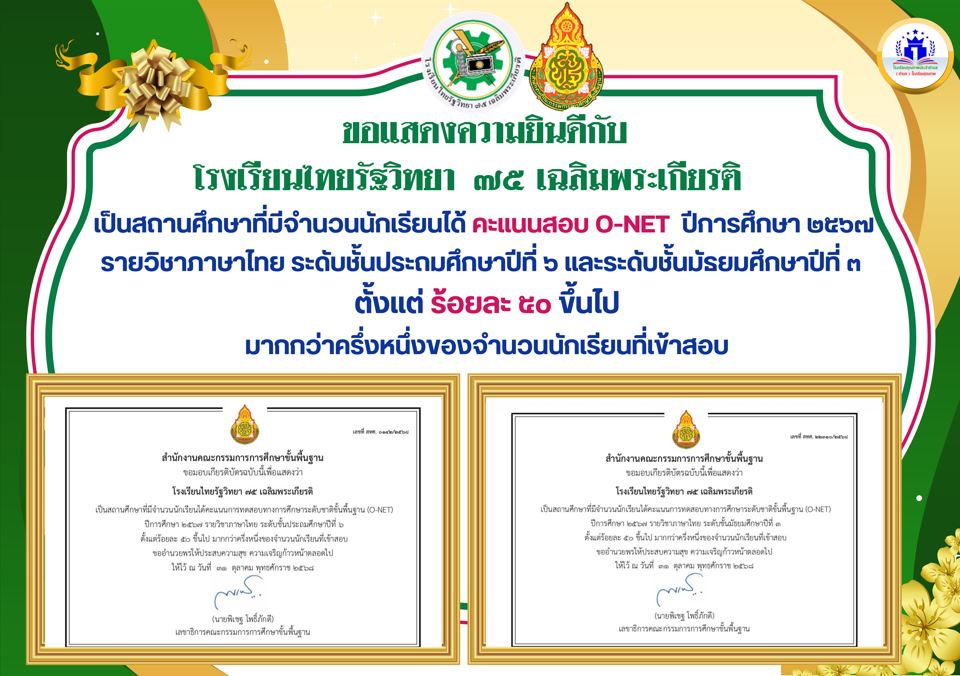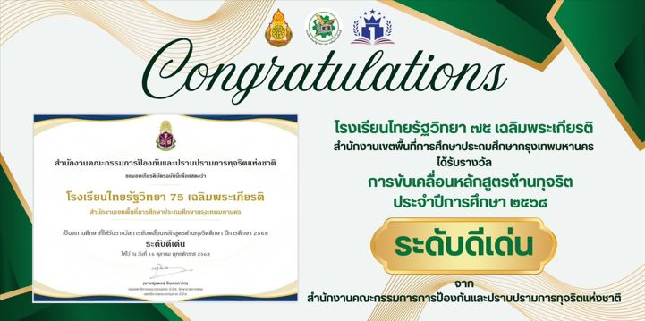 ยินดีต้อนรับเข้าสู่เว็บไซต์ โรงเรียนไทยรัฐวิทยา ๗๕ เฉลิมพระเกียรติค่ะ...
