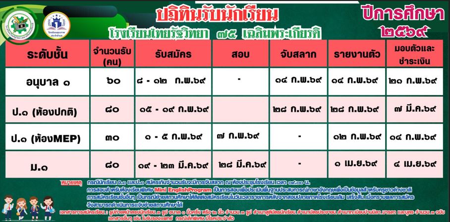 การรับมอบตัวนักเรียนชั้นมัธยมศึกษาปีที่ ๑ ปีการศึกษา ๒๕๖๙